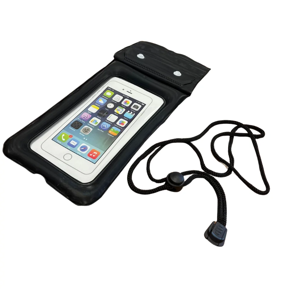 Funda protectora impermeable para móvil, diseñada para mantener tu dispositivo seguro y funcional incluso en contacto con agua, arena o polvo. Fabricada con materiales resistentes y transparentes, permite usar la pantalla táctil y hacer fotos o vídeos sin necesidad de sacar el móvil de la funda.