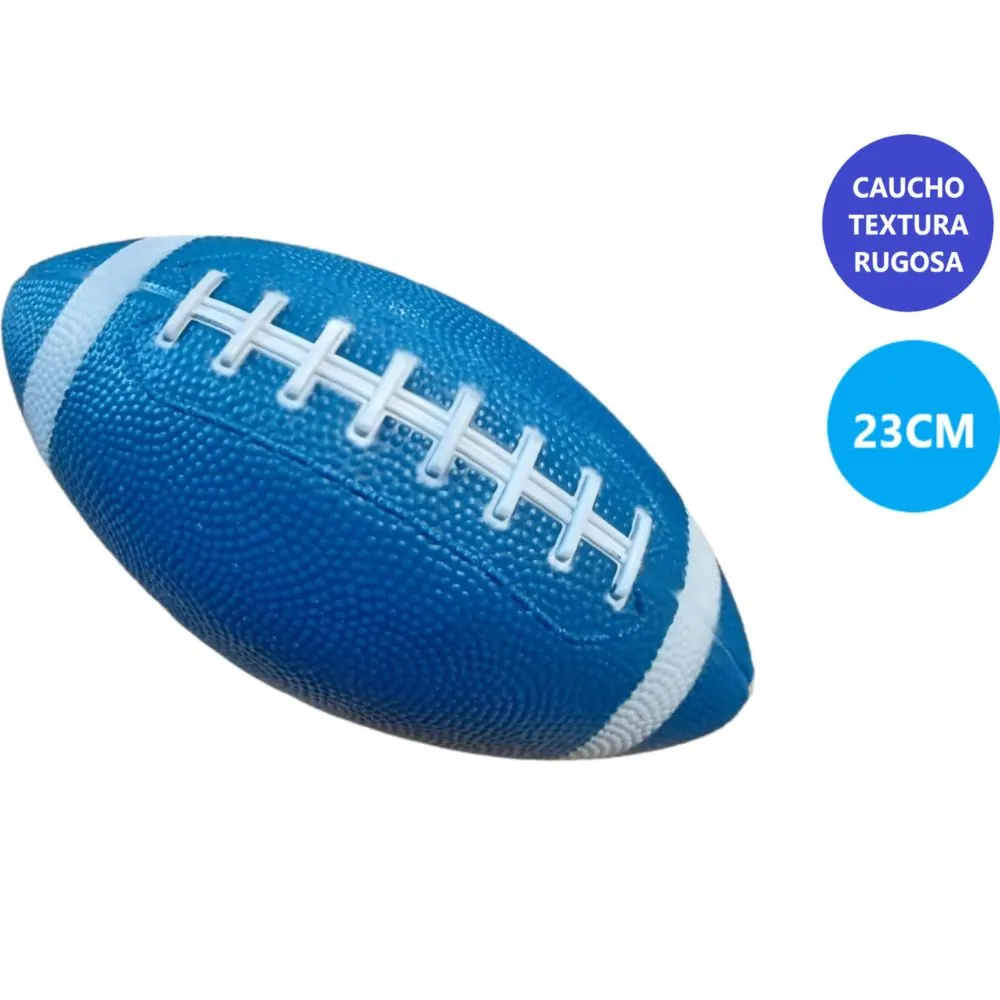 Disfruta del deporte con este balón de rugby azul de 23 cm, ideal tanto para entrenamientos como para juegos recreativos. Su tamaño compacto lo hace fácil de manejar, siendo perfecto para niños, principiantes o para llevar contigo a cualquier parte. Fabricado con materiales resistentes, ofrece un buen agarre y durabilidad para aguantar horas de juego. Su diseño en color azul le da un toque moderno y llamativo, convirtiéndolo en el compañero ideal para disfrutar del rugby en la playa, el parque o donde quieras.
